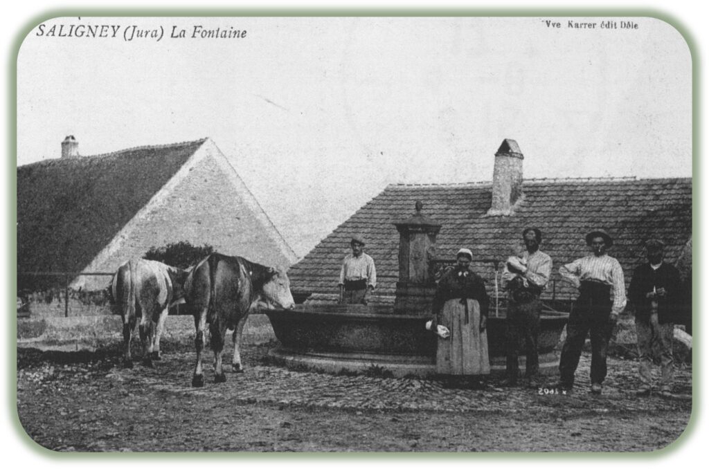 A Saligney, la source de Berche, située vers le tilleul à 1 km en amont, desservait le village en eau jusqu’en 1958 avec l’aide des béliers.